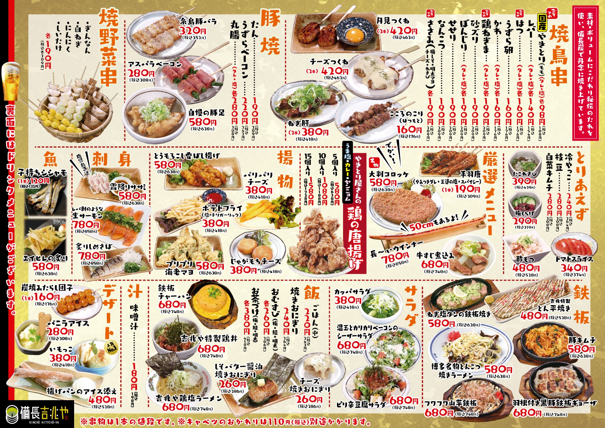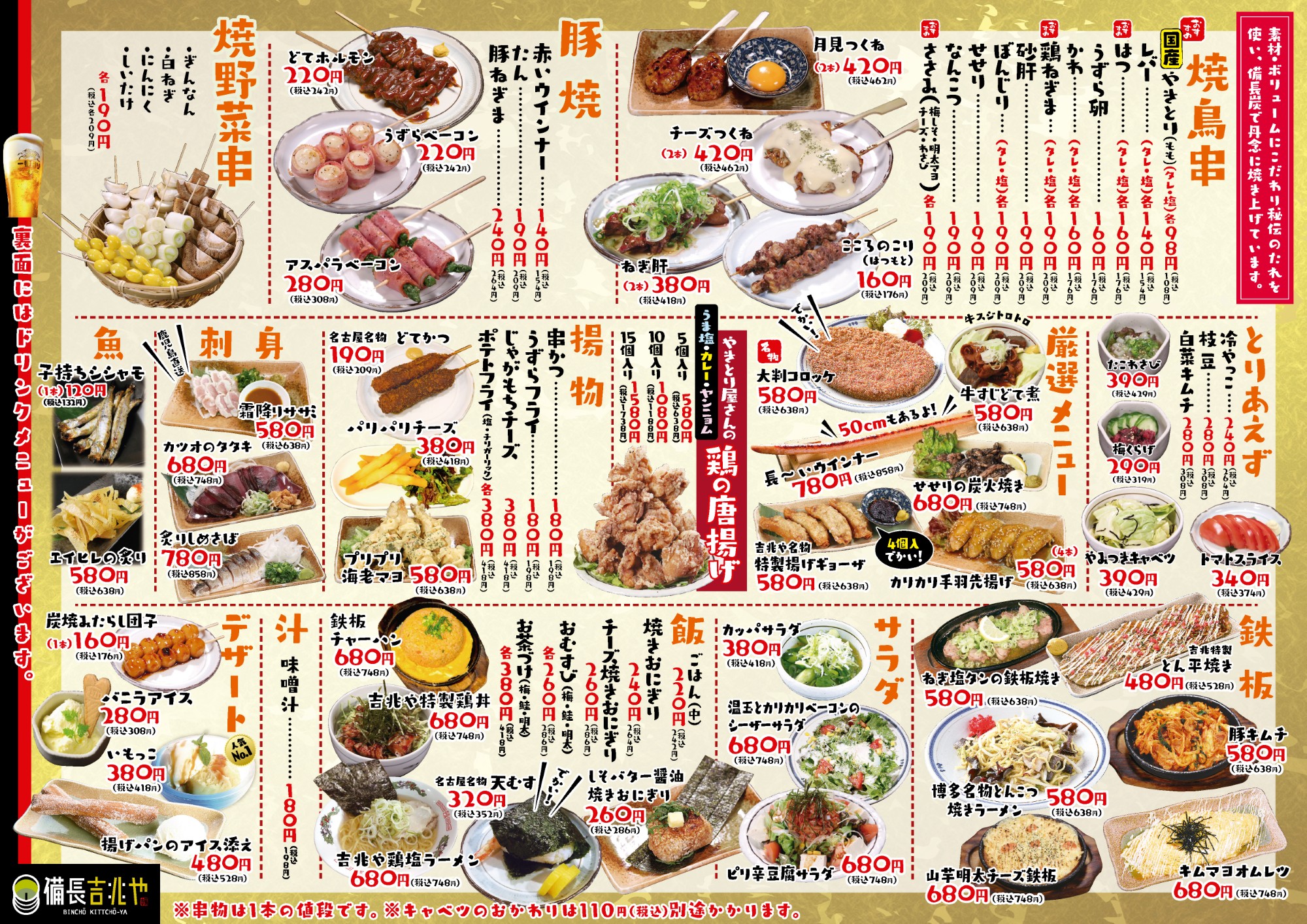 居酒屋 串焼き 備長吉兆やでは、期間限定メニューやキャンペーンメニューなど、お得でおいしいメニューも取り揃えています。 詳しくはコチラのキャンペーン情報をご覧下さい。